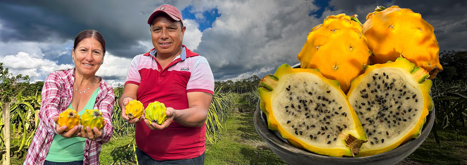 Cultivamos y comercializamos pitahaya amarilla de alta calidad, en alianza con familias productoras Shuar y mestizas. Juntos fortalecemos la comunidad y promovemos prácticas agrícolas responsables.